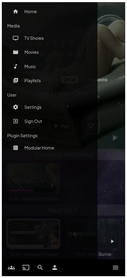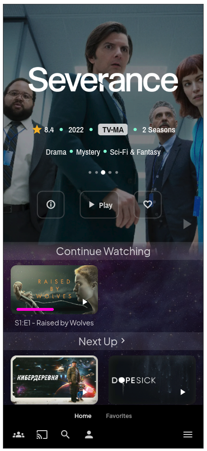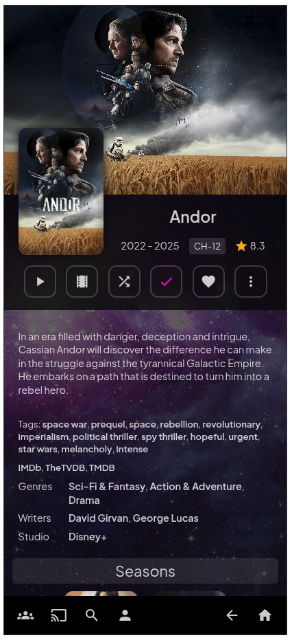 This theme is designed with a strong focus on htpc setups using Jellyfin Desktop as the client, while fully supporting both desktop and mobile devices.